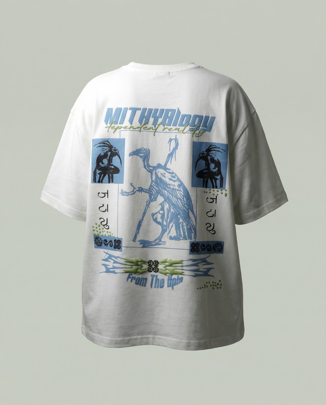 A unisex oversized heavyweight streetwear tee that revives ancient symbolism through modern form. Crafted from premium 240 GSM French terry cotton, MYTHYALOGY features bold mythology-inspired 3D puff print artwork for depth, texture, and presence. A limited-edition piece built to stand out. No restocks.